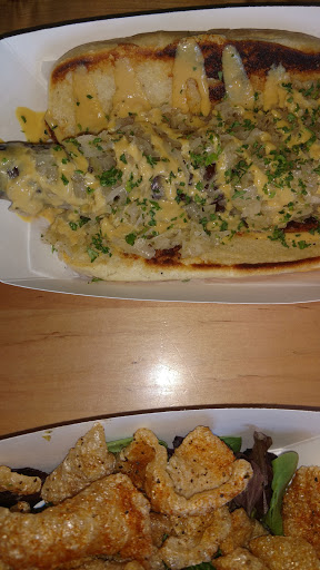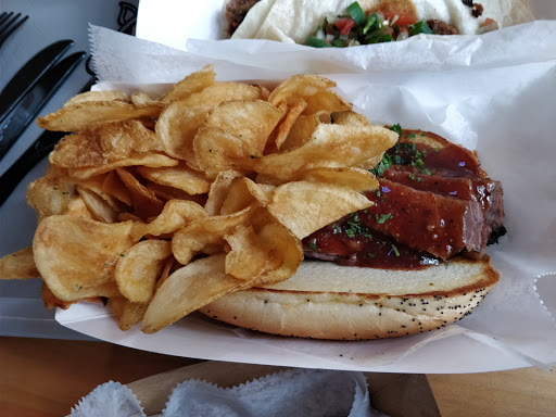 Over-priced and fairly bland. Had a brisket sandwich. Meat was tender but taste was a little off. Little hoagie roll overstuffed. More than half of the chips were inedible from over frying. Only had two bites of the dry flavorless corn on the cob. Atmosphere is nice and updated. Staff was attentive and friendly.