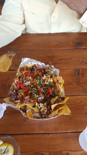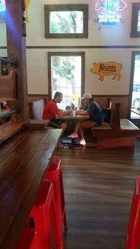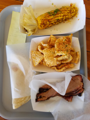 This place was ok. The pork sandwich was good, it had a great bun, pork was tender, the coleslaw was fresh and crisp. The fried pickles were a hit with my teen daughter, they were the Spears vs the slices and came with celery sticks and a good ranch dressing. The chips served with the sandwich were a bit bland and had a little overdone taste to them. I order the corn on the cob and did not like it or eat after two bites. The rub on it tasted like burnt food. My husband had the Hawaiian pork on rice said it was OK. We did like the assortment of iced down drinks available in the metal troughs. They had a great Root Beer and Moonshine Mint and Honey Tea. The place looks great, there is a nice covered patio out front with tables. Ive lived in 2 towns with some of the top Texas Barbecue available so Im very familiar with it. Its not what you think of as a standard Texas Barbecue place and as long as you know that going in then its ok.