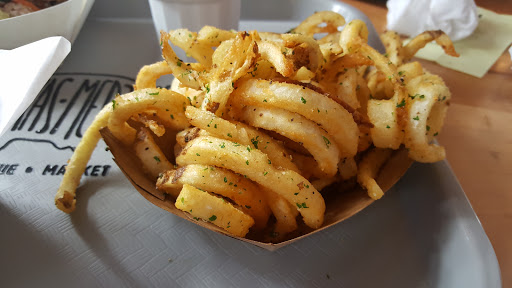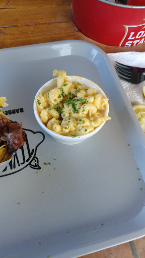First timer and WoW were we impressed! We had the #3 - Kahlua Pulled Pork on Sweet Roll with Chips and added a side of Pepper Jack Mac & Cheese and the #1 - Slow Smoked Brisket with Chips and added a side of Fried Pig Tails (Curly Fries). It was some of the best food ive had. High praise to the Chefs who came up with the recipes here! The Pork was tender and had just the right amount of Coleslaw as to not overpower the flavor of the Pork and the Pepper Jack Mac & Cheese was as you would expect - a smooth creamy delightful addition with just a hint of the Pepper Jack. The Brisket was smoked to perfection and tender. They use a unique seasoning on the Chips and Fries that is extremely addictive to say the least - it tastes like a mix of parmesan cheese and high grade salt, mixed with a hint of powdered ranch dip mix. Whatever it was, it was a treat and I dont believe I have ever experienced this exact flavor on chips or fries before! We sampled the BBQ sauce, although we did not add it to any of our food, as the food was perfect the way it was. The sauce was peppery and sweet. I really liked it, and did use it as a dip for a few fries and chips. All in all, I highly recommend stopping by when you have a chance and hope your experience was a great as mine. From now on, when I get a craving for some really good BBQ, we will be making the short drive out from SA.