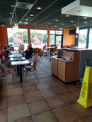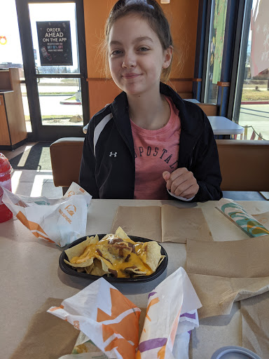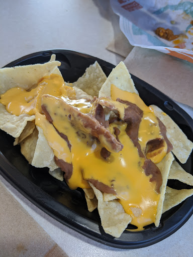 This taco Bell is not bad it does have some decent healthy options of food every time it never fails I go in there and tables are dirty and employees are just not busy very few cars in the parking lot and I have to search for a table I should not have to search for a table I should be able to put my ass where I want to sit not have to choose sitting in the hot sun, some employees are nice but some of them do not care about trip hazards everytime I walk in there to use the bathroom they got the little kids chairs and I got all the little straps hanging out and I could trip over that unless they want a lawsuit they should have more attention to detail, I think a manager was given a job interview to one lady and tables were dirty I just cannot believe she cant take a few seconds out of her time to tell one of the other employees to wipe some tables down come on now!!!!!!!