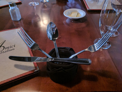 We discovered Amicis Signature Italian a few months back and it has become one of our favorite restaurants. The Mushroom Risotto is out of this world and absolutely the best Ive had! Last night, my fiancé and I had the Pork Porterhouse and Lasagna, and both were unique and fantastic. Based on our positive experiences here, I celebrated a birthday here with a group of girlfriends. The wine and drinks were very reasonably priced and everyone commented about the quality of the food. Bartolino also threw in a Creme Brûlée with raspberry topping. OMG! Please try this place.The ambiance of Downtown Carrollton is charming but the food is absolutely worth the trip!