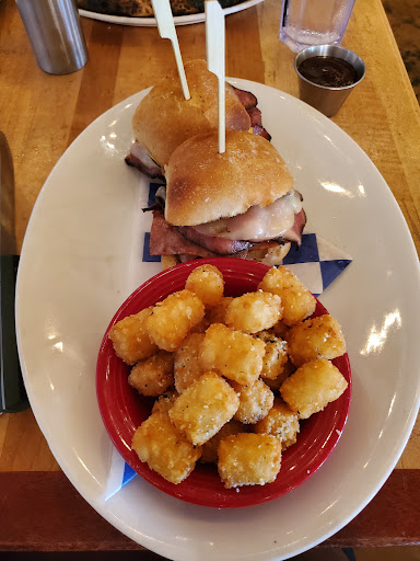 Went here for the very first and last time. I have drove by here several times and noticed the people going in. I thought it had to be good from the outside. Walked in a tripped over the door mat that was not laying flat on the floor. Hostess never said anything. Waitress was dressed like she worked at hooters. She told us about the specials so I ordered a pizza(only comes on size medium.) She ordered a sandwich. Both of us had ice tea. They brought the bill over on a piece of wood with a rubber band. Total bill was $42.78 plus tip. Not worth the price for what you get and atmosphere.