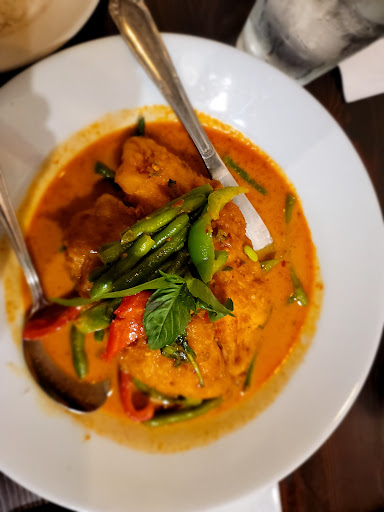 We spent 5 years living in Thailand eating only Thai food. for the last 3 years we have been looking for authentic Thai food ( not modified to American palate. We have been twice and now will make it a weekly or even more frequent outing. The first outing was lunch and Tom Ka soup with chicken. Superb taste , the portion was not too large for us older people but they did have too much chicken for us . We had the 4 star strength. As the atmosphere is modern and efficient we went for dinner. We started with the bikini shrimp which unusual then each of us had yellow curry one with just vegetables and the other with shrimp ( lots of them ) level 4 was correct. A big advantage for the night out is BYOB