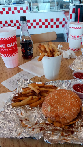 We seek out Five Guys when traveling, a little more than In N Out Burger but bigger and better. Really tasty hand cut fries. Always outstanding customer service and this location was no exception. I uploaded a picture as it didnt show up when we were searching Google Places.