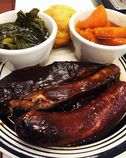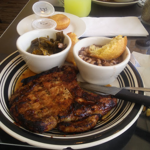I ordered Pork Chops ( 1 fried and 1 grilled) pinto beans, collard greens and peach cobbler. Everything was amazing! When I walked in I was greeted with a smile and the guy at the counter was more than helpful! I live faaaaar from here but I will definitely visit once or twice a month!