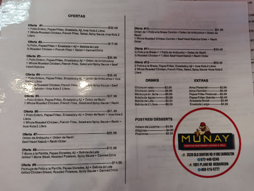 Chicken is really good. They just expanded and officially became Munay,which is progress. Happy for them. In time they need to learn to get at least 1 waiter and have AC or heater on. A place this big cannot be self service. Other than that, go and try this place. This is the closest to the autbentic peruvuan rotisserie chicken you will find in all of DFW.
