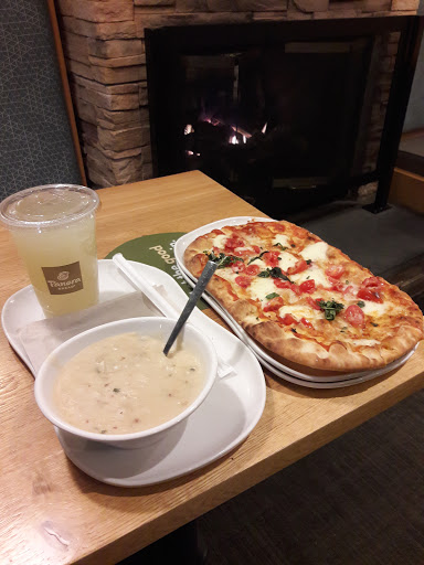 I have been eating at Panera for 14 years around the US (they are pretty consistent) and I can say that I got extremely Disappointed with my visit at this particular Store! ...Untrained and lazy staff, and also filthy dirty floors and tables! I dont recommend this place! Find another Panera to go to.