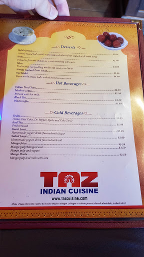 Im gonna be honest here. Taz is the first and only indian restaurant I have eaten at. With that being said, their food is freaking AMAZING. I dont have to have other Indian food to know what amazing tastes like. The atmosphere in the restaurant is really casual, almost kind of frumpy. the food tho is A+++ all the way. I Love the Naan, chicken tikka masala, and the desserts are amazing. I usually grab the food to go. The place is usually noisy and crowded and it isnt very big, so Id rather enjoy the amazing food in my own cozy atmosphere.