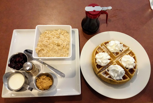 When we first arrived there was quite a large line to wait for a table, yet open tables everywhere. It was around 9am or so. Then noticed there was only one waitress on the floor. We asked to seat ourselves, which the waitress agreed to. There were a couple bus girls/possibly dishwashers helping the waitress. Kudos to them! They need a promotion! After everything settled down a bit our order was taken. The food was very good, it was very light unlike most breakfast plates youll see at diners. It wasnt covered in grease. The amount of food was just right. I was full but not overstuffed. Ill definitely return.