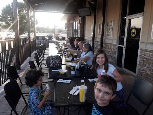This location should fire everyone and start over. They were not busy when we were there. 4 workers standing at front seated us immediately . We waited 20 min. And no one came for our drinks . We told one of the numerous waitresses that passed our table that we needed drinks and a waitress . She left and we sat there 10 more minutes without anyone coming . We went to the 4 people in front , who were still just standing there talking to each other , told them we still had not been waited on . And then we had a waitress finally come to our table . We gave our order and 30 minutes went by . We have now been there an hour and no food . We had a movie to catch in 30 minutes (which we had tickets already ). So we get up to leave and waitress starts coming with food . We told her we had to leave to get to the movie on time and they ruined our dinner . She chuckled and said Ill tell a mngr. We followed her to the mngr and told him we waited a half hour for drinks and half hour for wings . He said dont worry about paying for drinks , (which was 3 waters and 1 child drink and one coke .) Then The waitress that thought it was funny we waited so long asked us if we wanted to take the food to go . I said were going to the movies , why would I take the food to go . I know they have bugs to work out but ....come on . Its not the first Buffalo Wild Wings. .