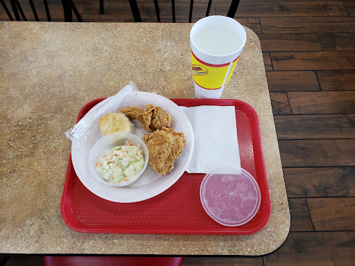 Chicken tenders and biscuit were barely warm, not so fresh. I was there in the afternoon, about 3:30, so I suspect those items were left from the lunch rush. Mashed potatoes and apple pie good and hot. Service was average- not rude, not friendly, but professional enough. The Huntsville and the Magnolia Chicken Express are both better.