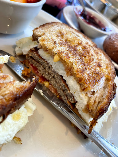 An excellent place for breakfast in the area. It might be gimmicky but their namesake plate, the one with the and egg in the middle of a piece of toast is perfect. I use to cook a sunny side up egg and then break it over a piece of toast but this is even better. Service is good and they keep the coffee cup full. Also important for a good Saturday morning breakfast is their prices are cheap and portions are huge. I would definitely recommend.