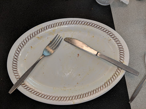 Was a slow time for them. No one else was there. But. As always. The staff were kind courteous and efficient. The food is always delicious, fast, and correct. It isnt the healthiest food in the world nut they have salads and such that the sell somewhat discreetly. My daughter goes crazy for waffle house. So I have to visit there often. This particular location has never let me down in any aspect of dining. (Except it seems to draw a Roudy crowd in the late p.ms
