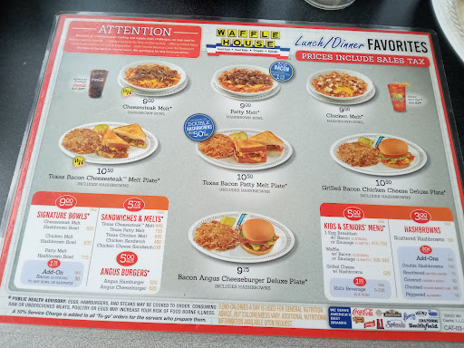 Excellent service (as always) great food (as always) Outstanding value (as always). If people asked for the " full menu " there would be a far greater appreciation of Waffle House. The $6.00 menu alone is incredible.