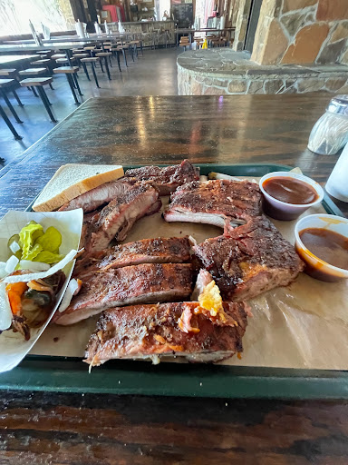 I have lived in TX nearly 38 years now and only recently was introduced to "market pricing" (Pay by the pound) when it comes to BBQ. Rudys is another BBQ that prices similar to this. 15 - 20 is about what you pay in Dallas for 2 BBQ plate dinners and thats about what you pay for 2 people here. Its over priced in my opinion for the quality, but for the amusement I suppose its priced right. I found the pits to be rather nasty but then thats what I tend to expect from a bbq pit. Anything less is just not bbq. The beef tastes like roast, most likely because its over cooked and they slice it incorrectly and too large. It ends up tasting a lot like a chipotle burrito of all things because of the way they slice their meet. I actually had them reslice it thinner three times before giving up. There is a limit to how thin you can cut dry meat before it falls apart and that about 1/2" which fully explains why they cut their meat so thick. Any thinner and it falls apart. Beans where ok, but none of the "salads" were any good. Stay away from the bread crumb and tomato salad. They have one BBQ sauce thats pretty good, but the rest are not. I found the table sauce and the thicker sauce by the beans to be much too sweat and very similar to a Kraft or KC BBQ. They also have a warm thin bbq sauce that would be much better with a thinner meat then what they are capable of serving. The sauce reminds me of Rudys. I highly recommend Rudys, Spring Creek or as mentioned earlier, even Dickies or Sonny Bs. I will not be eating at this place again.