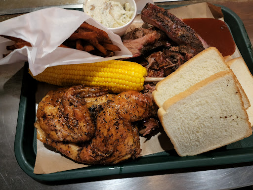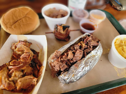 Ive been all over tasting all sorts of BBQ. Wet, dry, smoked, baked, oven, propane grills, charcoal grills... you name it - ive probably had it. That being said my standard is high. I understand perfection is all relative to ones taste buds. I enjoy a wet rub, not overly saucy though, you still have to taste the meats and enjoy the smokey flavors, a tenderness - a fall off the bone kind of goodness. I like a bit of heat to my sauce too, heat as in spice. And the rub itself has to leave a lingering of flavors in every bite. Hard Eight falls short of my criteria of what makes BBQ great. The layout and atmosphere is lively and fun. Its setup for folks to walk thru a food line and look at a huge menu to decide what they want... but really all that goes out the window by the time you walk up to the pit master cutting all the meats they offer. The first bad thing was that they ran out of ribs... so that already was a huge let down. Secondly - everything was just so-so. For all the hype and how its cooked and all the smoke blowing every where I would have expected a lot more flavor. But everything was just bland. Meats (brisket and chicken) wasnt dried out but just lacked flavor of any type. The chicken skin was nicely crisped but was just boring in flavor. I had the brisket put in my baked potato and that was just lack luster as well. The sauce was sub par. Nothing to rave about but didnt have any kick in flavor and/or spice. I would have preferred sweet baby rays. The apple honey (i think) bbq sauce had the most flavor but was really watery and did some what of a good job as a dip but not a sauce. Generic tasting mac and cheese and the potato salad was "mehh." Overall a fun lively place without a doubt - the folks seemed semi friendly for the most part. But this is far from the best BBQ in the south. Perhaps they were good at one point but I should have known when I saw the fleet of catering vehicles out back that perhaps theyve just been too commercialized and focus more on quantity rather than quality.