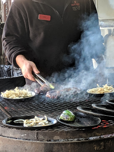 I travel and eat BBQ all over the 48. I have never seen a better presentation than at Hard Eight. Some may be put off by the heat and smoke, but I love that the ordering line allows you to see the whole BBQ-making process. If youre not hungry by the time you reach the pit master, something is wrong with you! I am a little disappointed with their corn (Ive had both the grilled and buttered, neither are great) and their half chicken (dry, not a great flavor), but the rest of the food, along with the atmosphere, are more than enough to keep me coming back. Theres a friendly older man (the owner or manager, perhaps) that will ofttimes greet you as you come in. He asks if its your first time; if so, he gives helpful pointers. Hard Eight has a big patio, and on cooler days its enclosed with heaters, and there is a fireplace! Sometimes there is a live band as well. If youre not in the mood for BBQ per se, order a ribeye; it comes covered in butter with grilled onions and a jalapeño (see my picture), plus two sides, for $27.50. Worth it. Pros: -The presentation and atmosphere -The steaks -The "BRUSH POPPERS"! These little bacon-wrapped chicken pieces on a stick with onions and peppers are a MUST order. Get 3-4 to try and/or take home. -Their "cornbread salad". Dry, crumbled sweet cornbread with cheese and more- the best side dish Ive had here. -The fireplace - ... Too many more to list. Cons: -Not hands down the best BBQ meats Ive ever had. The chicken is too dry and lacks flavor. The other meats are pretty good though- Ive just had a little better. -It gets crowded and loud, especially on the patio with a band. Overall, this is a great place to bring your friends and family. Id recommend it to anyone (except that one crazy person, er, vegetarian that you know...)