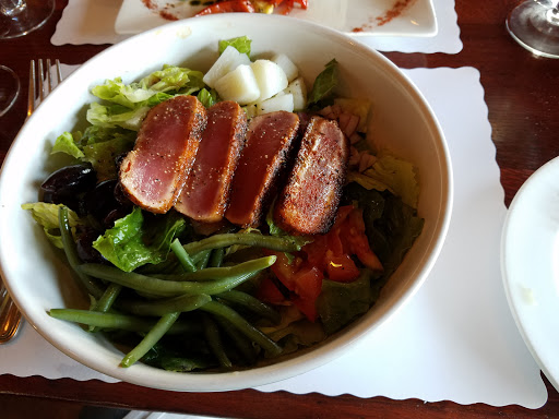 For a French person the food was ok. A little pricey. The chicken was ok, the whipped potatoes, spinach, and French fries were very good, the croque monsieur had good flavor but disappointingly was served on a hamburger bun with the top cut off ( not how it is supposed to be). I think the most disappointing part though was the wait, there was no one else in the restaurant area maybe 3 at the bar yet it took more than 30min to get our food.