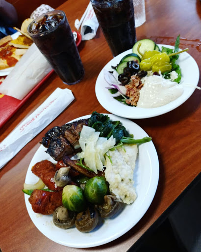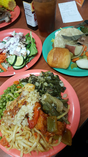 None of the food was decent quality, the shrimp didnt even taste like shrimp, the rest of the fish, and the fried okra for that matter, literally had no flavor. The steak was very unevenly cooked and even worse was more than half of it was fat, Im not on a diet here, nor do I expect super lean food from this place, but seriously? The soda was borderline flat, and had almost no syrup, it may as well had been day old club soda. Speaking of day old, the pizza looked like it was little Ceasers rejects from two days ago, I didnt even wanna try it. The tongs for the biscuits fell on the floor from one of the customers, and the staff just picked them up and put it back in place, not even washed or replaced. The ambiance was dreadful, there was no background music or any form of atmospheric sound besides a bunch of people talking too loud and their screaming kids. The desert bar was just shameful, woo theres a chocolate fountain, with 2 things to dip in it, but the actual selection of desserts were crushed pies, crushed cakes, brown chocolate ice cream, yellow vanilla ice cream, and didnt even have sprinkles or normal toppings, just weird stuff like gummy bears and candy corn, the cones, I swear were not paper but had the texture and density of it. The fudge, at first, wasnt bad, it was kinda cheap. Then on the ride home I was attempting to keep from vomiting it up. Finally did when I got home and I have to say that was the most pleasant part of the entire meal. I used to love this place as a kid, back when it was on staples, and I have to say I was really happy I didnt try the salad bar and ruin that memory too. Customer service was less than friendly, but they did send our claim to the insurance to get it handled, we were called back about it a few days later. Do yourself a favor, applebees and longhorn steakhouse are down the road, If you want seafood, go to snoopies on the island, and if you want pizza or salad, go to cicis on ayers. If you want some combo of the above, just go to H-E-B. Save yourself. Any of those options would be cheaper, taste better, and healthier.