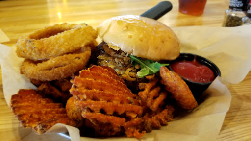 Great burgers! The kid at the order counter was very friendly, unfortunately the girl at the bar not so much. My husband walked up to the bar, stood in front of the bartender to order a beer and she was fixing a drink, so of course he waits his turn. She finished fixing the drink and it turns out it was for her, and still no acknowledgement. She walked away and left him standing there. It was not until another girl came from the kitchen was he able to order his beer. She needs a lesson in customer service, quick. 5 stars for the food 5 stars for the kid at the order counter. Negative 5 stars for the little girl with the long hair at the bar
