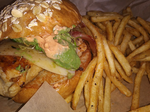 Food is awesome! They also have a bar. Plenty of seating inside and outside but outside seating is right next to a very busy road so can get noisy at times. You order first then find a seating and they will bring you your meal. Sorta pricey, two large burger meals and one child meal 40 bucks! Waiters were friendly and helpful. Can get really busy at some points, luckily I got there when there was only 4 people ahead of me and just a few minutes later there was a line almost out the door! But will definitely be back again when I have extra money.