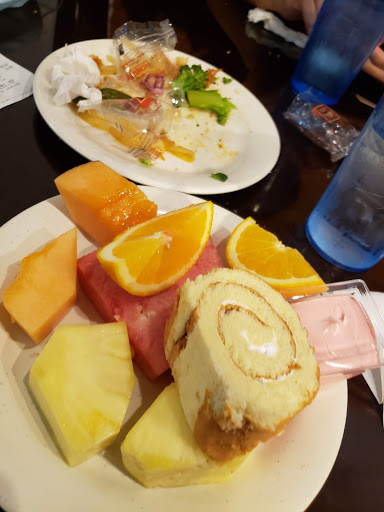The inside looks decent. Clean and our waiter stopped by the table to refill our drinks often. Sadly to say the food here is very bland or worse. The ice cream area had 1 scoop and the line was long. The wash area for the scoop had filthy water. Idk if you would want to scoop ice cream with a scoop covered in dirty water. Overall the place was clean with okay staff the food however is a completely different story.
