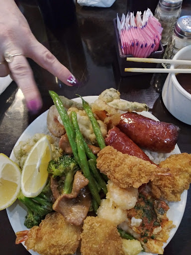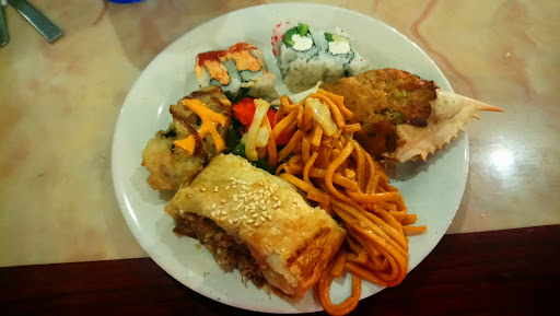 I went to this place with the Mrs and my 2 kids. When first walking in we were greeted by a fountain like we were headed to a banquet or something. Inside, they have a hibachi grill, which we didnt even try (no room), sushi bar, dessert bar, salad bar and about 6 hot bars for selection of anything from Italian to Chinese. There was this one dish called beef pie which was basically like a brisket in a fried shell. I know, it sounds awesome and it was the highlight of our table. Even my 18 mo old couldnt get enough of it. There was also a good selection of seafood, which shouldnt be a surprise since were near the gulf but regardless was great, especially the flounder. So why the 4 stars you ask? First of all, for me to rate a place with 5 stars would mean it was exceptional up and down the line and all boxes checked. Unfortunately, I cant say that for this place. The water was OK, tasted slightly funny, like it needed better filtering or something. Another minor complaint is they charged full price for our 11 yr old which most places that I know give you til 12. Speaking of the 11 yr old, she said one of the bathroom toilets wasnt working and another needed to be cleaned out. This is a major oversight to me especially in a busy establishment as this. Another minor gripe was some plates werent cleaned thoroughly, which wasnt too big of a deal because we just picked the next one. Again, these were just minor complaints to prevent me from rating it perfectly. However, the major boxes were checked: taste; check. variety; check. price; check. sushi; check. Ambiance and other things like that shouldnt matter at a buffet. Im not sure why some other reviewers have such a bad score, which is mainly why Im reviewing because I dont do it often. This place was so good to us my daughter mentioned coming back to Corpus just for this place. And thats saying something because we live 6 hrs away!