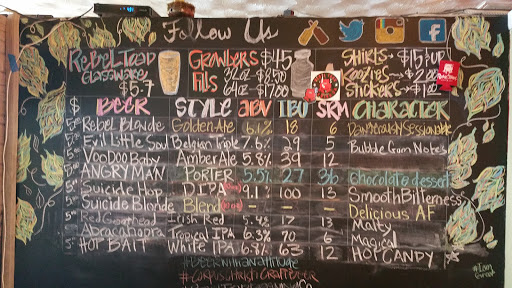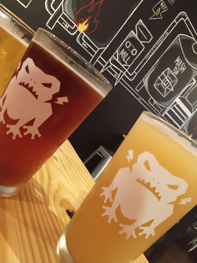 If you like ales, this place will treat you right. They have a small selection of their own brews. The place was quite busy on the Saturday night when we went, but we were able to pull up a seat at the bar right away. They had some awful live music but it was winding down when we got there. There was indeed a food truck outside that had some good-looking food, but I didnt try it as I had just come from dinner. If nothing else, go to this place and get some merchandise because their Rebel Toad logo is fun.