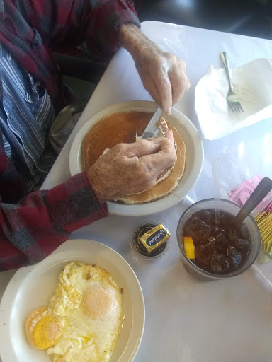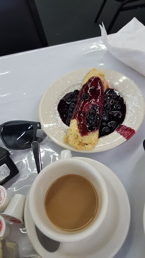 I will go back at some point and give this place another try because of the other reviews, but my experience there was lacking and Im very hesitant to go back. There are very few good places to eat in this God forsaken town, so I will give it one more chance... I went in to order breakfast to go (was running behind on time and needed to order asap) but there were no menus to look at. I took a seat and had to wait for about five minutes before anyone saw me and gave me a menu. I told her that I was ordering to-go and asked if I could have a water while I waited and then asked about the coffee menu (because I didnt see one, yet saw "coffee bar" on the menu). She told me that the coffee machine was broken but gave me a cup of black coffee anyway, which was nice. I got my food and took it to work. I ordered a pancake (glad I only got one because they are HUGE! - they should tell you this when you order or have it on the menu) with strawberries. The fruit is $2 extra so I thought it was be worth the $2, but there were hardly any strawberries on my pancake. I also ordered eggs, over-easy, but they were over-hard, very hard. They were fully cooked. I also ordered the side of potatoes, but she failed to tell me that the potatoes have cheese all over them! I had to throw them away, I cannot eat cheese. What a waste. They also had bell peppers on them. A waitress should ALWAYS know to tell someone if the item they ordered comes smothered in something else (if for some odd reason the menu doesnt list it) in case of an allergic reaction. Overall, it wasnt worth the $11 I paid for my breakfast and mediocre black coffee. When I looked up this place online, it had a coffee bar and "fresh pastries" so that is exactly why I went. Today is a my cheat day and I wanted a really good coffee and some pastries, instead I got a huge pancake I cannot finish (although it was good), overly cooked eggs, and potatoes that I could not eat because they had burnt bell peppers and cheese on them. Oh, and I never got my water while I was waiting (I asked twice).