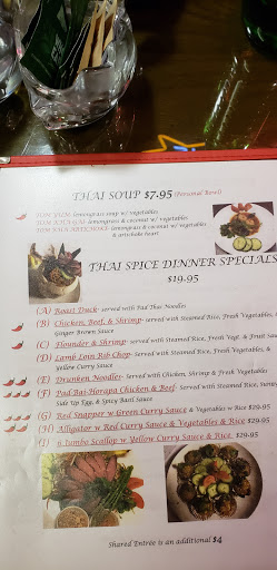 In a word "Horrible". In two words "Utter Horrible". They should be booked for cheating ideally. We were 4 people. As soon as we sat down, they got us 4 soup bowls even though they didnt ask or we ordered. We thought it might be complimentary. We checked the menu and all the items were priced at 14$. Since this is the first time and we did not know the quantity, we ordered two items. Usually Thai restaurants else where gives enough quantity for an item to fill more than a person. Here, it was not even enough for a cat to feed. They got a small bowl of curry with two spoonfuls of rice. We ordered extra rice. Another two spoonfuls for 3$. Food was bad enough that they did not make it to our specifications. Finally when I saw the bill, it was 40$. They charged for two soups(3$) that they initially got and we did not even had. When I asked about it, they said since we ordered only two items and not 4, they charged for the soup.When I asked why did they even bring it in the first place when we did not even order. The answer was amazing. "Thats how business works Sir. 4 people, 4 waters, 4 soups, 4 plates, 4 spoons". Really? Its plain cheating. I havent had such an experience in any other restaurant in USA. If some one writes a positive review about this restaurant, I would doubt their credibility as well. There is a subway just across the street. Please stop your craving for a day for Thai food and go there. Try some better Thai food some where else. I would rather die starving than dining there ever again.