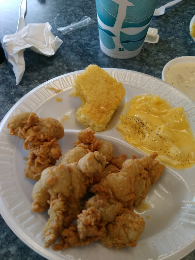 Great food! Very friendly service. We had fish sandwich, chicken stripes, delicious cole slaw, mac and cheese (delicious!). Definitely best place to eat when travel.