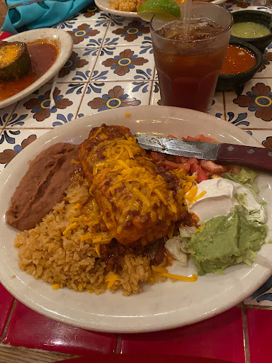 First time here and I already know this is my new regular Tex-Mex restaurant! It has such a fantastic atmosphere in the main room with their wonderful village courtyard facade! Arriving just before 6PM on a Tuesday night, we were seated quickly and supplied with the customary and excellent thin and crispy chips with red (rojo) and green (verde) sauces that were thankfully NOT heated (which I very much prefer!) For the appetizer, I ordered the Eduardo Dip (queso and ground taco meat) with pickled jalapenos which was good and actually more meat than queso. For dinner, I searched the menu for what I consider to be the Holy Trinity of TexMex, a crispy beef taco, a beef enchilada and tamale with rice and refried beans. The closest match was their Vera Cruz where I simply asked them to replace the cheese enchilada with beef. ¡Muy bueno! All in all, absolutely great and I will definitely be back!
