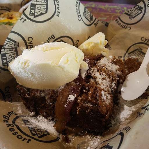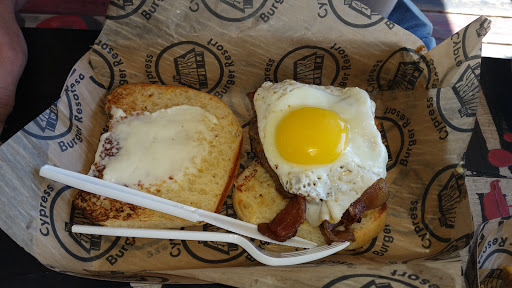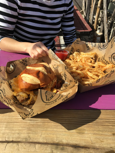 Mothers Day at The Shack A few months ago we accidentally stopped into this location as we werent aware of the location on Cypress Rosehill Rd. So we basically walked in, sat down, got a call from our friends and realized we were at the wrong place and left. In the 5 minutes we spent there the impression I got was it was a cozy spot with a relaxed vibe. I noticed a table of board games near the entrance which sent a message that this place didnt mind if you came to hang out for the day. We ended up at the other location and had a great time and some fantastic food, so when Mothers Day came around, my lovely wife suggested we try the location closer to us. Compared to the original location, the outdoor seating area is smaller as is the kids play area (which is still pretty stinking good-swings, tires, old bus, sand) but it has a nice indoor setup which I did not see at all at the original location. I imagine the big fans inside would be nice once the Houston summer is fully upon us. The menu is the same and the food was just as delicious! The tap menu (draft and cider) was roughly half the size of the Rosehill location but still more than most places Ive been with lots of variety. Just like the original place, the ordering is walk up but unlike the other Shack where they bring your food around to you, you pick up back at the counter you ordered from so keep your ears open for your order name (we had George Strait). Also the food was ready super fast. We were eating within 15 minutes! Had the Slow Rock Fries again (brisket and cheese on fries?! uhhh, yes please!!) and the Bad Decision burger (2 grilled cheese sandwiches instead of a bun! AWESOME) We sat outside where we could keep an eye on our little ones while they played and occasionally ran to the table to grab a bite of food. Paper towel on every table makes cleaning sticky fingers and faces nice and easy. I love both places and will definitely go back whenever Im craving the best burger in Houston!