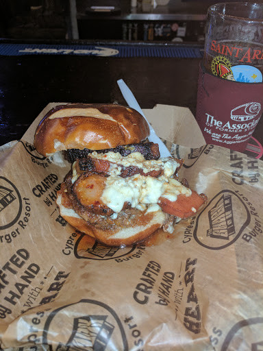 It was our 1st time at this Telge location. When we walked in, there was a live trivia game ending which is kind of a neat idea. Too bad we missed that! We walked in and stood around not sure what to do as nobody greeted us. We soon located a sign saying we should grab a menu, seat ourselves, and order at the counter next to the bar. We were charged $60 for 3 burgers, 3 drinks, & 3 fries (daughter ordered cheesy fries & husband ordered onion rings). I thought this was a little pricy for hamburgers but knew from experience that they were good. What shocked me though was when the cashier flipped around the screen and gave us an opportunity to leave a tip. A tip for what? They gave us a characters name for our order and we had to go pick it up ourselves when they called. The extent of the "service" was that right at closing, we were still there, a girl came around and picked up 1 of the 3 trays we had on our table. On a positive note, the burgers were great! And they now have a soda fountain machine, so free refills are now an option. Bottom Line: The food was good, people were friendly, but the "service" was non-existent so Im perplexed by the mild pressure to tip when the food is already expensive enough. Final Thought: Dont sit outside until after youve received your order. You cant hear the call telling you your order is ready and they wont come out to bring it to you, no matter how slow they are.