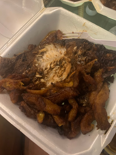 Delicious Tilapia, done exactly the way I like it. All what I left on my plate was the skeletal bones of the Tilapia...lolol. My wife was surprise to see the before and after job I did on my plate.. I did extreme justice to the fish. The spice was just out of this world. My only recommendation would be for that particular dish to include a small serving of vegetables like broccoli, squash and carrot mix. That will complement the fish and the rice or plantain. I will definitely return for more...