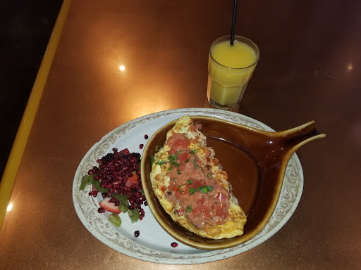 The descriptions on the menu sound really good. But, when you receive the food, it is a great disappointment. They put in one or two of the listed ingredients (one mushroom in an omelette where mushrooms are a major ingredient!). Have you ever had basil chiffonade that was brown, crunchy and resembled dried seaweed? When you order an exciting-sounding omelet and get mostly dry scrambled eggs (but you pay an expensive omelet price), it dampens your appetite. Dont make my mistake (twice). Demand that they correct your order (when they serve you the wrong omelet), add the ingredients that are listed on the menu (more than one piece of the ingredient) or that they dont cook the omelet until it is as dry as a bone. Better yet, dont go there! Spend your money somewhere else where you get better food for the price!