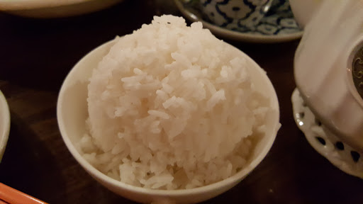 Ive only ever gotten take-out, so I cant speak about the quality of service during meal-time, but every time I go, Im greeted by a group of really pleasant people. They put cabbage in a lot of their dishes inexplicably, which was my only complaint eating here the first few times -- but I started to request they leave the cabbage out and Im super happy. The food is good, well-priced, and super convenient to get right off 75 on my way home. Their mango sticky rice dessert is the bomb, too.