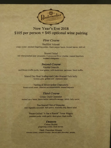 My husband and I went to Boulevardier last night for our wedding anniversary. We started out with the Crawfish Beignets which were spectacular. I used to travel often for work in Lousiana, and I am a big lover of cajun dining. These savory beignets were perfect. Most places overpower crawfish with too much roux or other sauces. I could taste the crawfish which was delightfully seasoned, and the pimentos gave a nice zing to the dish. My husband ordered oysters and loved them (I am NOT an oyster person, but he seemed very pleased). My husband ordered the Bouillabasse and it from the ONE taste that I got from the broth, I can tell you it was excellent. I ordered the market fish which was red snapper with clams over tomatoes and mushrooms in a bacon broth. I eat seafood, but not meat, so I politely asked if they could do the dish with another broth. The chef kindly made mine with lobster saffron broth, and my word, that was a tasty dish! The flavors were spot on, the fish was perfectly crisp and tender. I left very satisfied, but not overly full. Great date night restaurant!