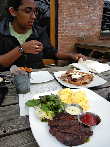 This restaurant has an amazing Sunday brunch. The staff is super friendly and courteous. The food is very delicious. I recommend trying their unique version of eggs Benedict. The food here has an eclectic taste to it. The coffee is very good bold and strong. The mimosas are phenomenal. The menu is fairly small but as with most great restaurants the menus usually are. This place is located in one of the newest trendiest areas of Dallas. It is located in the Bishop arts District which is an attempt to revive the southern part of Dallas Oak creek Overall this restaurant is a must if you were visiting Dallas.