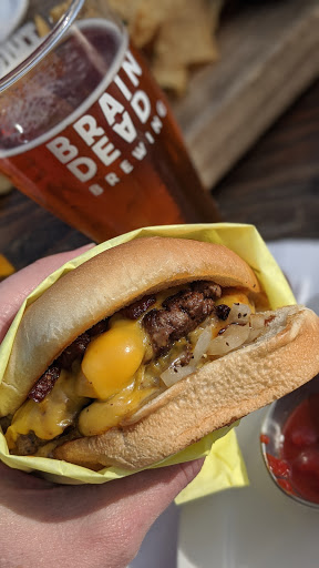 I agree with most of the reviews that the atmosphere is great. For the most part the service is okay...Yesterday I was there and there was a massive bee hive by the patio. The owners wife thought it was a good idea to have it removed during the middle of the day. The beekeeper arrived and proceeded to scrape the hide into a wine box without warning the crowd of spectators that the bees were going to go crazy when he scraped away the hive. About 15 people got stung including myself and a girl I was hanging out with. The owners wife came up to us afterwards and offered us drinks. We assumed because of the experience we had just had that the drinks were comped and it was pretty clearly implied by her offer. When we went to settle our bill for our drinks the beers we had ordered from the owners wife were charged to us. We complained to our server and he went up to her in plain sight of us. The owners wife acted like there was no way that we could have mistaken her offer as a comp. The point is this place has quite a bit to learn about running a customer service oriented business particularly in the food/beer service industry. You do not create a sustainable business from one time customers, you create it by those customers continuing to return to your establishment. After this experience I am dissuaded from going back to Braindead. I hope they figure it out because they clearly have a great concept.