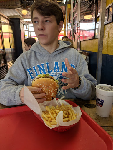 I think this place is overrated, I give this place 3.5 out of 5. I liked the old fashion, nostalgic vibe. Costumer service wasnt so good, but they made my food ready so fast. I order a triple cheese burger with fries and a large coke. Price was ok, fries was tender and fresh but I didnt like the seasoning, burger was large enough and juicy but it wasnt tasteful enough. In general it was good, and I might eat here again but it wasnt anything spectacular, it was just another greasy burger!