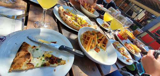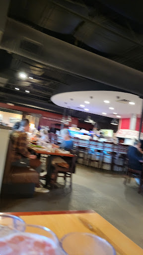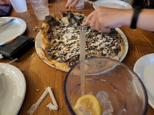 Very cool setting with the outdoor deck and wide open spacious indoor seating where you can see them roast the pizza in the corner. Prices were a bit high for the quality of pizza I got. We were in a party of around 15 people and the waitress refused to split our checks because of some "policy" they had. It was a Sunday afternoon at 2 and we were one of 5 tables in the restaurant. To accommodate for it, we each individually had to add up what we bought and then apply tax and one by one give our card to her so she could ring it up. She rolled her eyes more and more with each card and snapped at the back half of the table because it was taking too long. Needless to say, this was a bad impression for me as it was my first visit. I just wish we had been treated more nicely as we were celebrating a work birthday for a coworker. We all work in the food industry and have Sundays off for friendship and worship and are greatful to go to restaurants and tip well for great service, but when the server is rude and rushes a party out, we cant help but walk out with negative outlooks on the experience. The date of our visit was 2/26/17 and we were there from 12:30 to about 2. Our waitress was a tall thin brunette and I would seriously recommend a training class for her on how to please guests and be genuine.