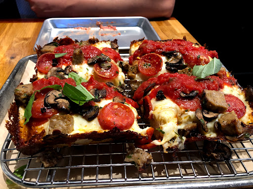 I love this place! My boyfriend and I have been eating here for at least 3 years now, and I rarely eat any other kind of pizza anymore. Fave pizza: the Honey Badger. Fave appetizers: the Capra salad may be my favorite salad ever, and there is no reason that the Angioletti should be so good since its just some kind of bread, but gah! So good! The deserts. Are. Ridiculous. All of them, but the Edgar may be my favorite, but maybe the Ladybird... Waitstaff had always been friendly and attentive, and we like both of the locations near us. (Deep Ellum and White Rock ).