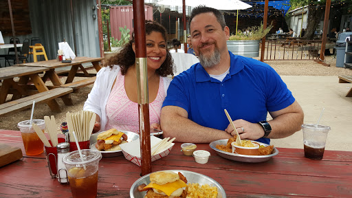 Some of my 27 year old sons friends from High School that we know were playing and we were invited to listen to them at The Foundy / ChickenScratch. It was not at all what I expected. We arrived around 7pm on Friday evening. The valet parking was a surprise, but turned out to be a wise choice. It was a great outdoor patio venue with picnic tables under large trees with misters and fans cooling the place down. Very Austinesque. Friends directed us to the Chicken Scratch order window inside a small adjacent building. Having never eaten there before I ordered a half pecan roasted chicken, some fried chicken fingers, and Cabbage Jimica slaw. I gotta say I simply could not get over how GOOD it all was. I was slurping the vinegary dressing out of the bottom of the slaw container and sucking on the bones of the "half-bird" roast chicken and wanting more. By then the wait for more chicken was an hour. No worries. I called in an order for pickup Saturday and we ate more of that wonderful fare all weekend. I should add that, at my sons recommendation, I ordered the mac-n-cheese Saturday and it disappeared at the first meal. Truly great food in a fun atmosphere. Im getting ready to reorder takeout right now and planning to go back with friends.