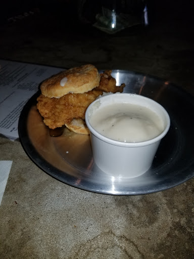The atmosphere is wonderful. Ideal for a small family like ours. Our almost 3 year old enjoyed playing in the playground, but was mostly entertained the entire time by all of the rocks. Bring them in clothes you are okay with getting dusty and dirty. She complained about the rocks in her shoes a lot, so maybe some tennis shoes and not flats. Woops. Now on to the food. My husband ordered The Foundry, which was their fried chicken biscuit with mashed potatoes, bacon, mustard and American cheese. It was large but he was pretty disappointed that something that cost $11 did not come with a small side. He was still satisfied, however. He would rate it a "4.7" out of 5 because "nothing was perfect". My daughter and I ordered the kids meal. Two chicken strips with a side of Mac and cheese for her, and a side salad with carrot vinaigrette for myself. There was the option for fries as well. Chicken strip was decent sized and juicy. No dipping sauce came with it, so I just used the Cholula sauce on the table for some flavor since it was lacking. The side salad was pretty small but I did order a kids meal, I suppose that is to be expected. Just some mixed greens with three thin slices of radishes. The carrot vinaigrette was basically blended carrots and vinegar, which I enjoyed. My daughters Mac and cheese however, no one enjoyed. Now Cadence can put down some Mac and cheese, for example at sweet tomatoes she eats two of the soup bowls full, but here at Chicken Scratch, she did just scratch at the surface of it, leaving pretty much all of it behind for mom and dad to eat. We left most of it, and that speaks a lot for us because I hate wasting food. The only way I can describe it is as if my daughter tried to cook the pasta, left it out overnight and it hardened and lost its texture, then she tried to mix the powdered cheese and water but didnt quite get it right so there were lumps left over when she poured it over top of the pasta. Literally...the "cheese" was clumped up and barely covered the pasta. The Mexican street cart style popsicles that came with the kids meal was actually the best thing I had there. I had the pecan and my daughter chose the mango. Those were milk based and creamy goodness.