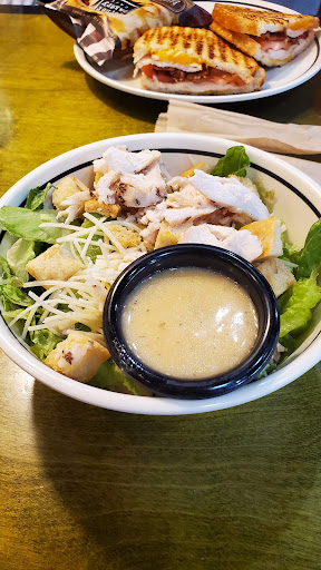 caesar salad was VERY bitter, fruit was very good and the baked potato soup was gluey even pasty tasting. have taken its toll on their recipes. was very disappointed. the choc muffin and the blueberry bagel tasted like they had been sitting out all day, very dry. at least the neighborhood birds will get a good breakfast!!!! just tired of spending money and nothing tastes good.