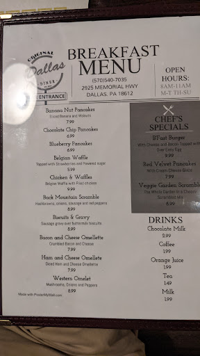 Excellent food, friendly environment and pleasant service. A few tips: During lunch rush sit inside versus outside, service was uniquely different. They do not sell donuts at all anymore. Most pictures posted are long outdated, it is simply Dallas Diner, breakfast and coffee. Enjoy yourself.