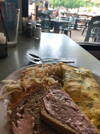 The Addison dream cafe has a one of the two best patios in the area (despite the poor view): its got an even shade/sunshine balance, a cooling summertime breeze, and plenty of foliage to counteract the areas usual concrete vistas. The food is tasty and wholesome with plenty of fresh options, whole grains and fresh vegetables, and vegetarian friendly fair (beyond just salads). The lunch and dinner menu is vaguely Mediterranean inspired with a few dishes of a more Tex-Mex nature, and a nod to the deep South in their tasty cheese grits. The brunch menu is more northern: Belgian waffles; pancakes that achieve an amazingly light, fluffiness (thanks to ricotta cheese); omelettes; benedicts; and steak and eggs dominating. One dish tips the hat to a more traditional Texas style breakfast. The service, while friendly, isnt quick -dont come if youre in a hurry.