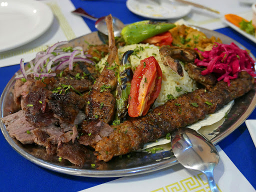 This place has potential, because some of the food is quite good, like the bread and butter given with your drinks. My wife and I slipped in here around 7PM on a Saturday and Id say the place was less than half full. After receiving a nice introduction to the menu from our server, we were then left there for a good 15-20 minutes before she returned to take our order. Our food then took a good 25-30 minutes to arrive. Some of it was quite good (the rice and the lamb chops), some was quite dry and difficult to chew (the beef and chicken kabobs). After finishing our meal, we then waited a good 15 minutes before we got the attention of our waitress to bring us our check. We then waited another 15 minutes before we could get the attention of another staff member to ring it up. Note that this place was never near full the entire time. All told, we were there the better part of two hours for a meal that couldve taken 45 minutes. Bottom line -- we will not return. Food wasnt great and the service was terrible. I think you have to be a neighborhood regular to be in the good graces of this place. If not, they could care less about your patronage.