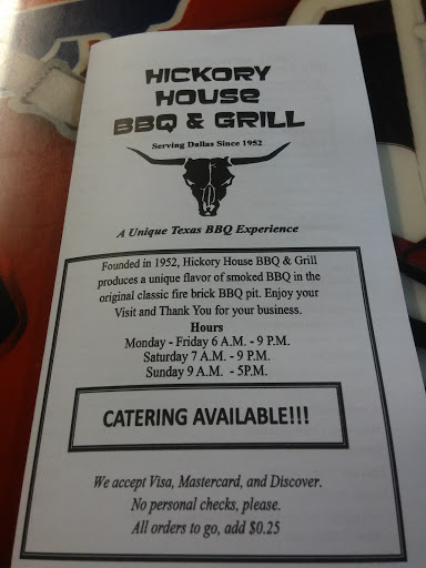 I ordered a combo sliced beef and sausage plate. Meat was cold, fries were cold and the corn had a tangy taste, the plate was supposed to come with Texas toast, it wasnt in the order. For $12.00 I should have gone to Fuel City just down the street and gotten fresh hot tacos made to order and saved $6.00. Hickory House Barbecue SUCKS